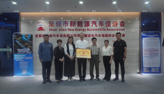 讲话结束后,张武波同志代表深圳市社会组织总会联合党委,为中共深圳市新能源汽车促进会支部委员会郑重授牌。鲜红的牌匾象征着沉甸甸的责任与使命,标志着促进会党支部正式开启党建工作新征程。