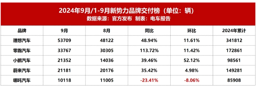 新一周零跑汽车以0.87万辆的销量反超问界,位居榜单第二名,同时,相比于上一周(9月30日至10月6日)的0.35万辆增长0.52万辆,增幅尤为明显。值得一提的是,9月零跑汽车销量为33767辆,同比增长113.72%,创月交付新高,这也是其连续两个月销量超3万辆。据报道,几日前,零跑汽车CEO朱江明表示,零跑汽车10月销量将创纪录,预计为3.8万辆左右。