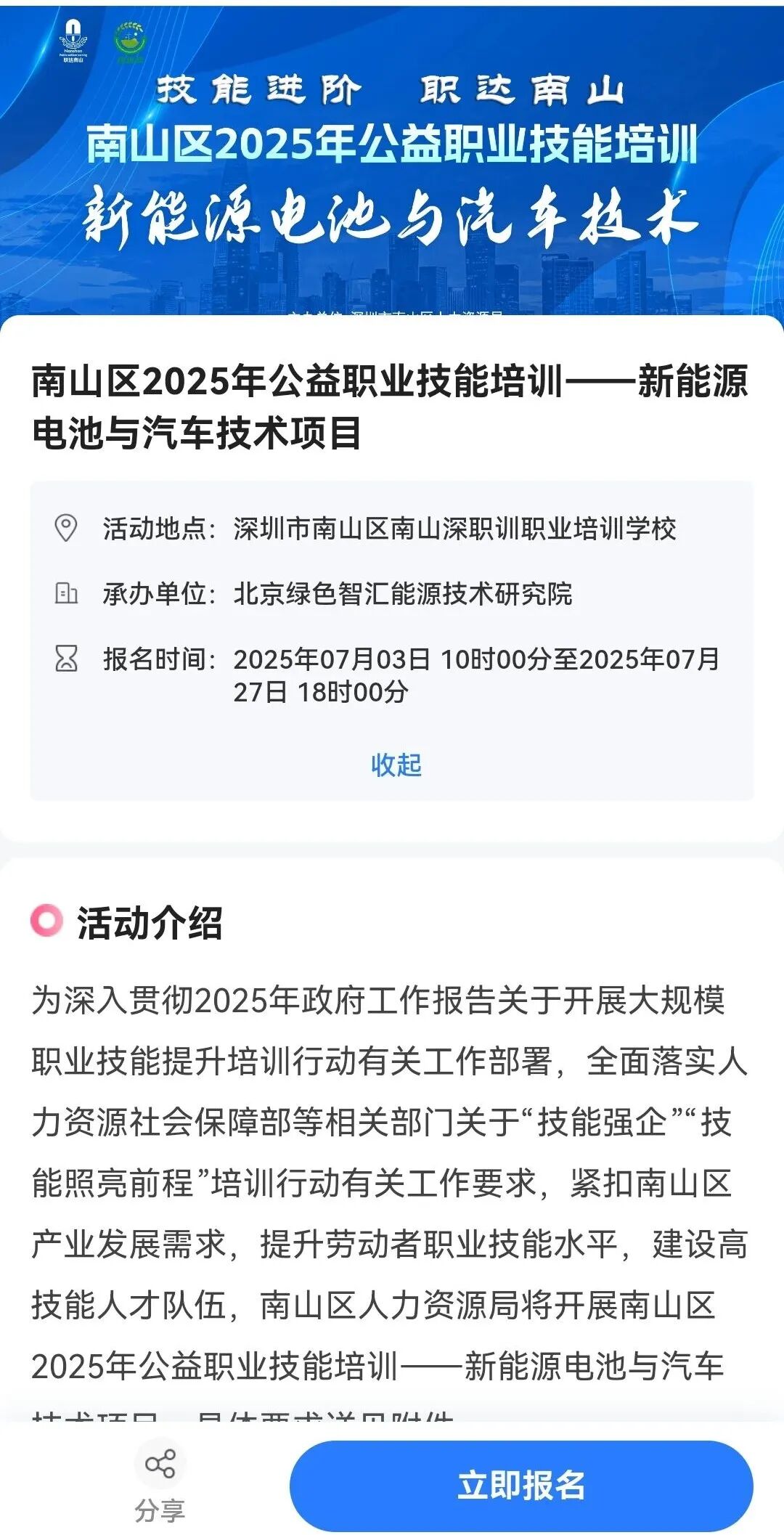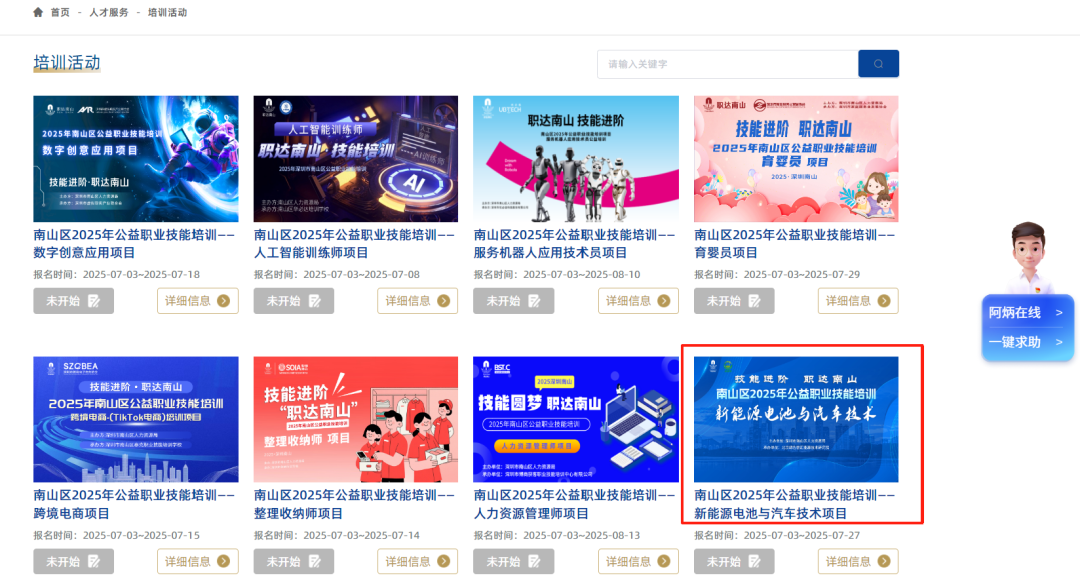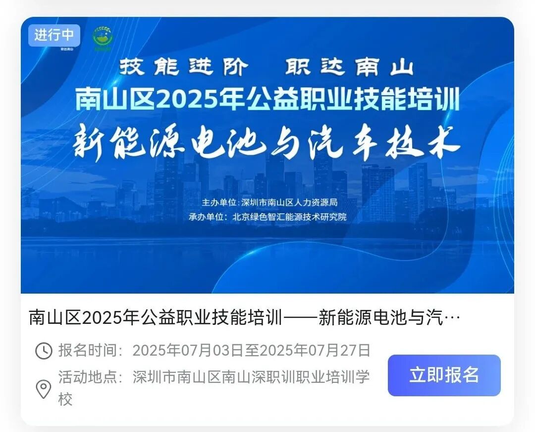 7、在此培训活动页面,找到【新能源电池与汽车技术项目】——点击“我要报名”。
